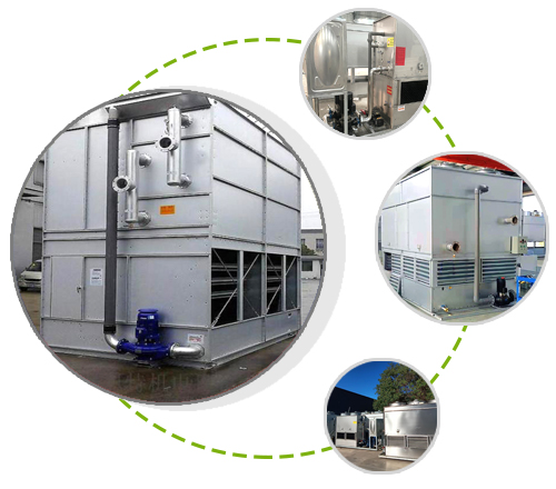 閉式冷卻塔在化工行業(yè)中應用廣泛,主要用途包括循環(huán)介質(zhì)的降溫與制冷,如循環(huán)水、冷媒、液壓油、淬火液等。它通過塔內(nèi)水噴淋、空氣流通以及水循環(huán)進行熱交換,實現(xiàn)降溫或制冷目的。閉式冷卻塔提